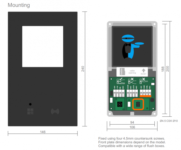 | Power supply | 24V (18..28V), 85mA (+door lock) |
