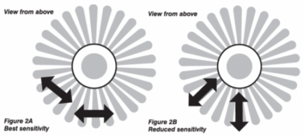 - PIR detector is more sensitive to the motions “across” the detection zones than “toward” or “away”.