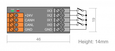SW-W4 IEX-2 is a compact remote input module with 4 digital inputs. Any kind of push-button design can be used.
