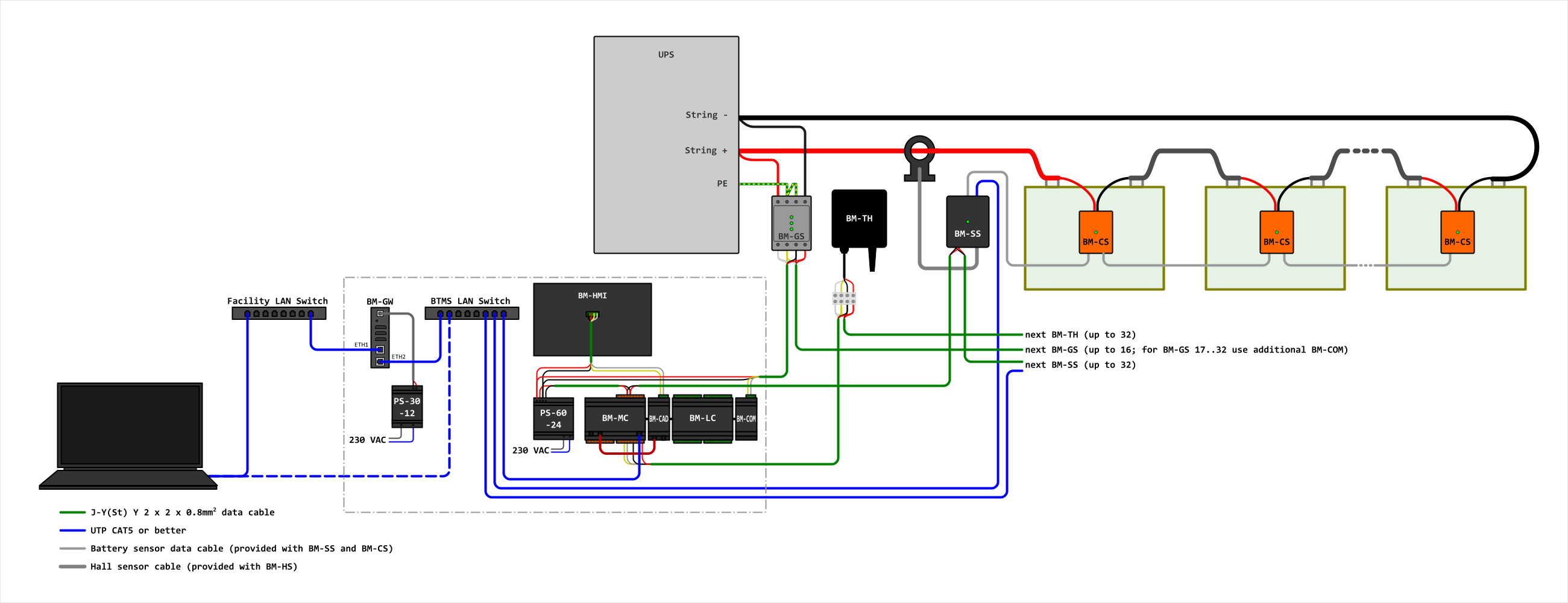 BTMS is a battery monitoring system for larger UPS systems. Enables: