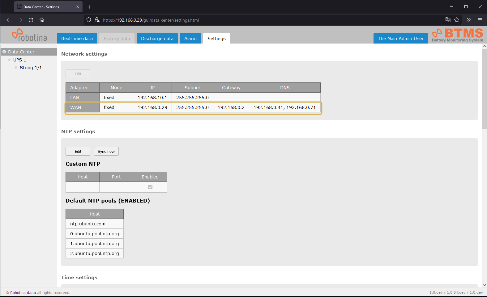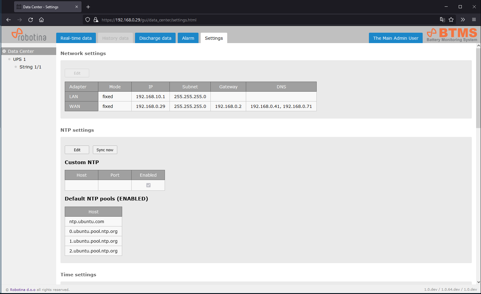Network settings, NTP settings