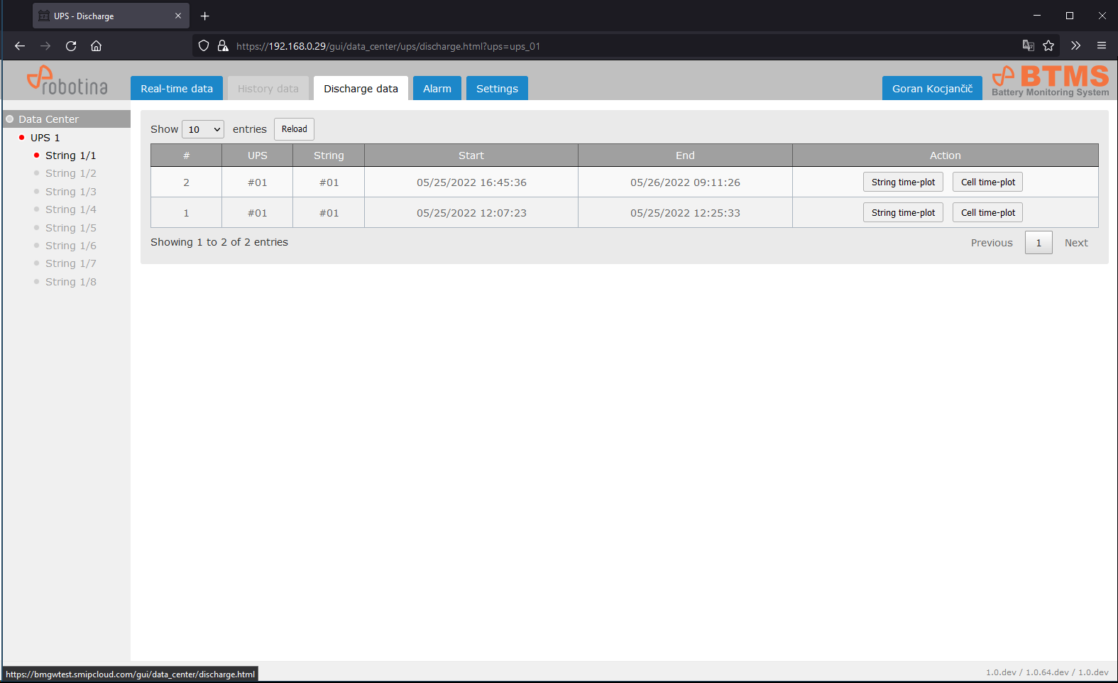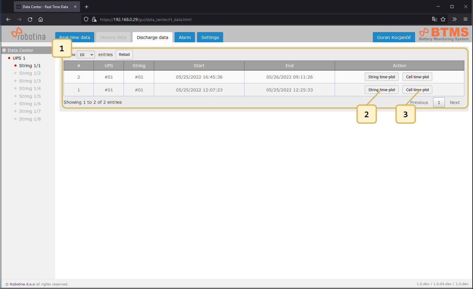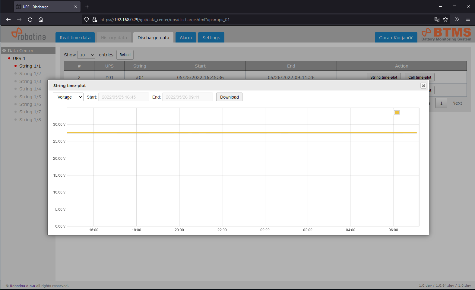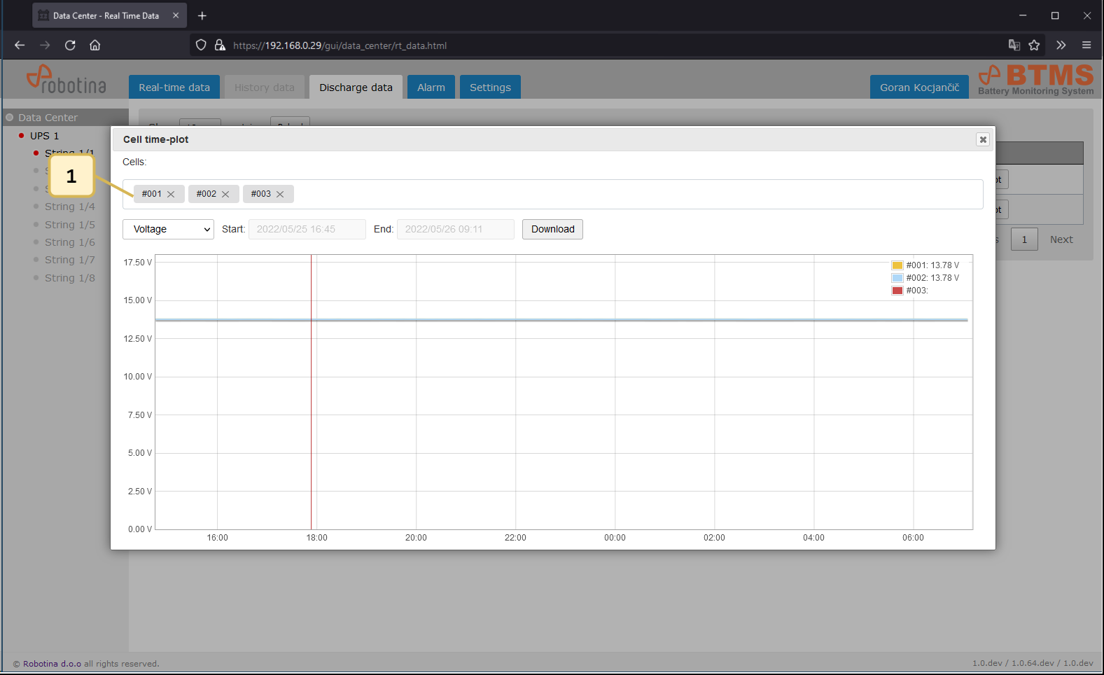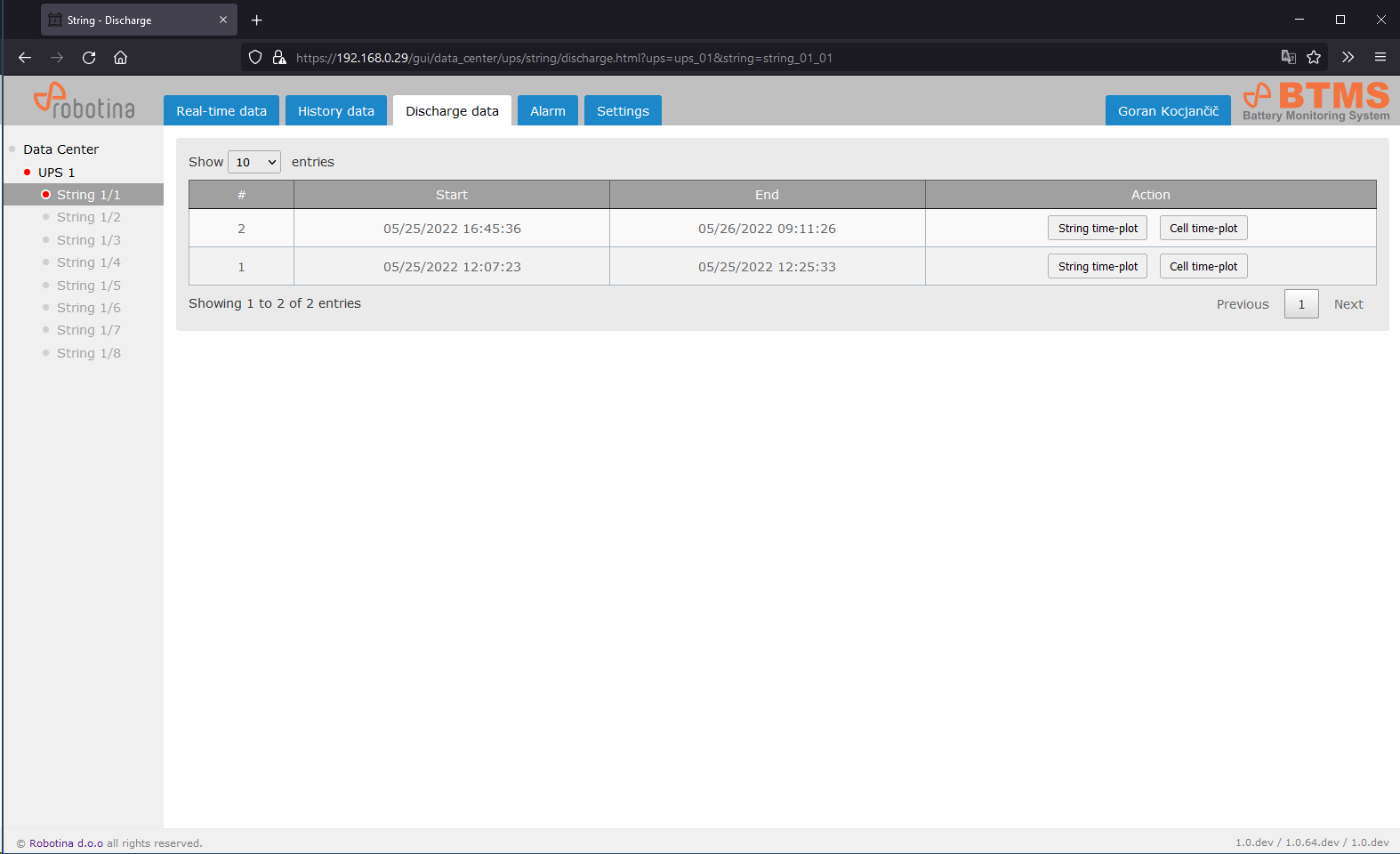 | 2 | String time-plot for discharge event |