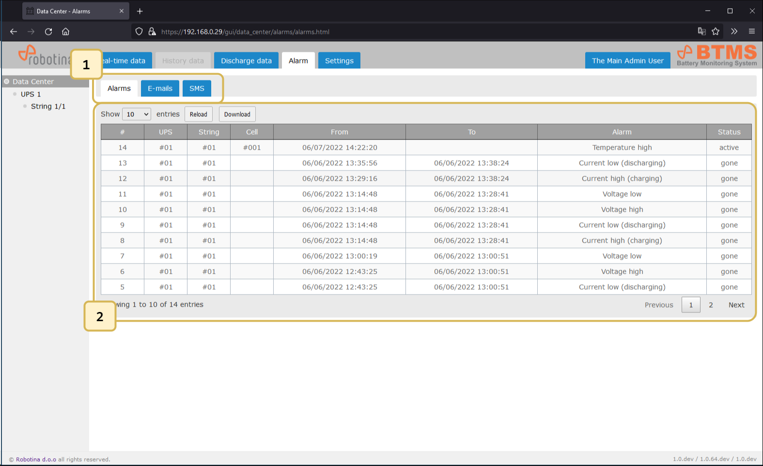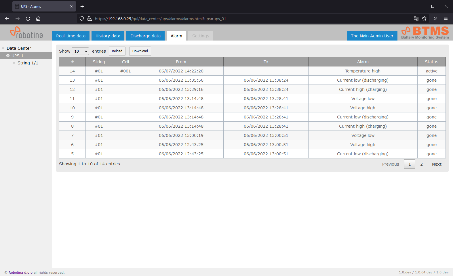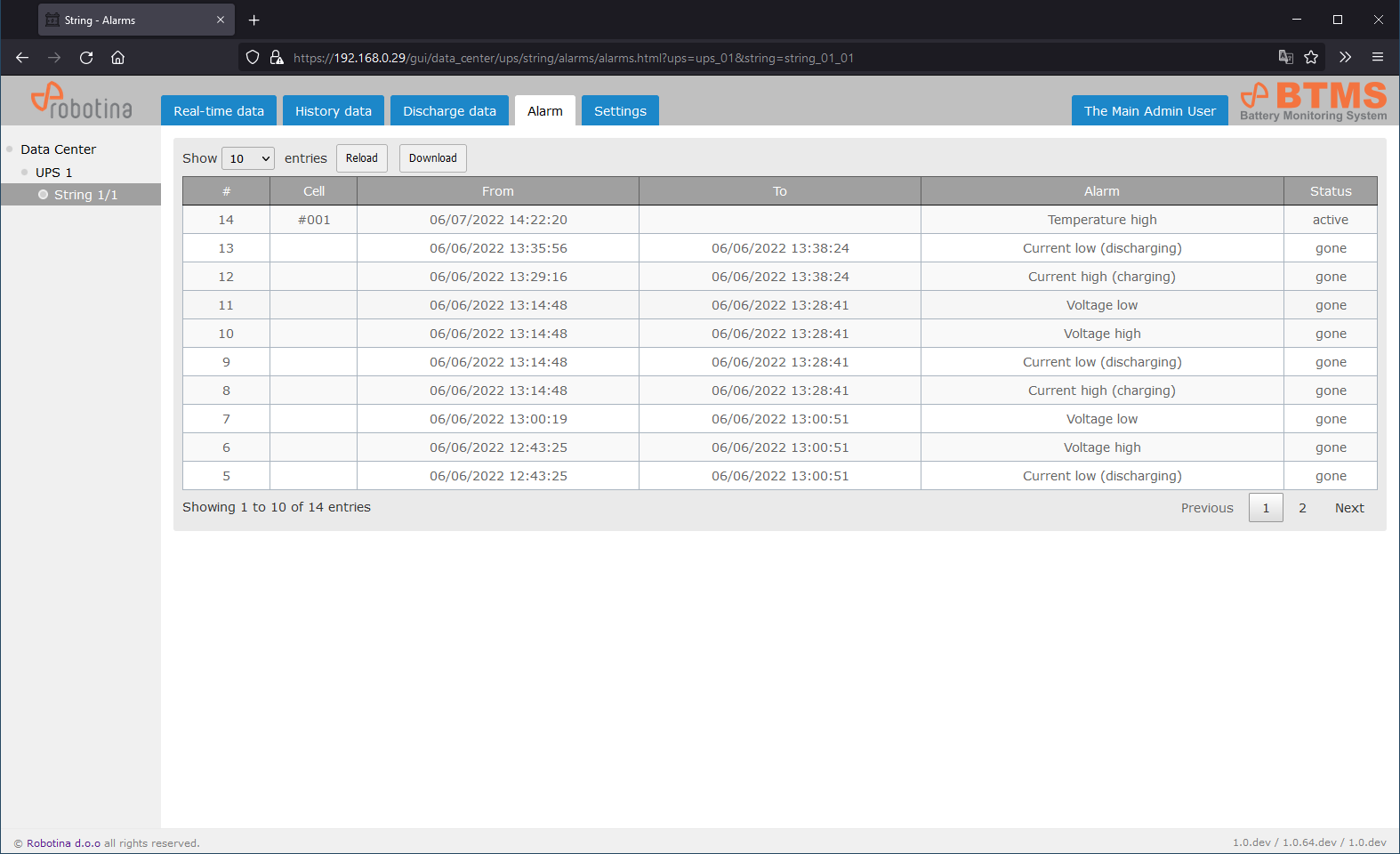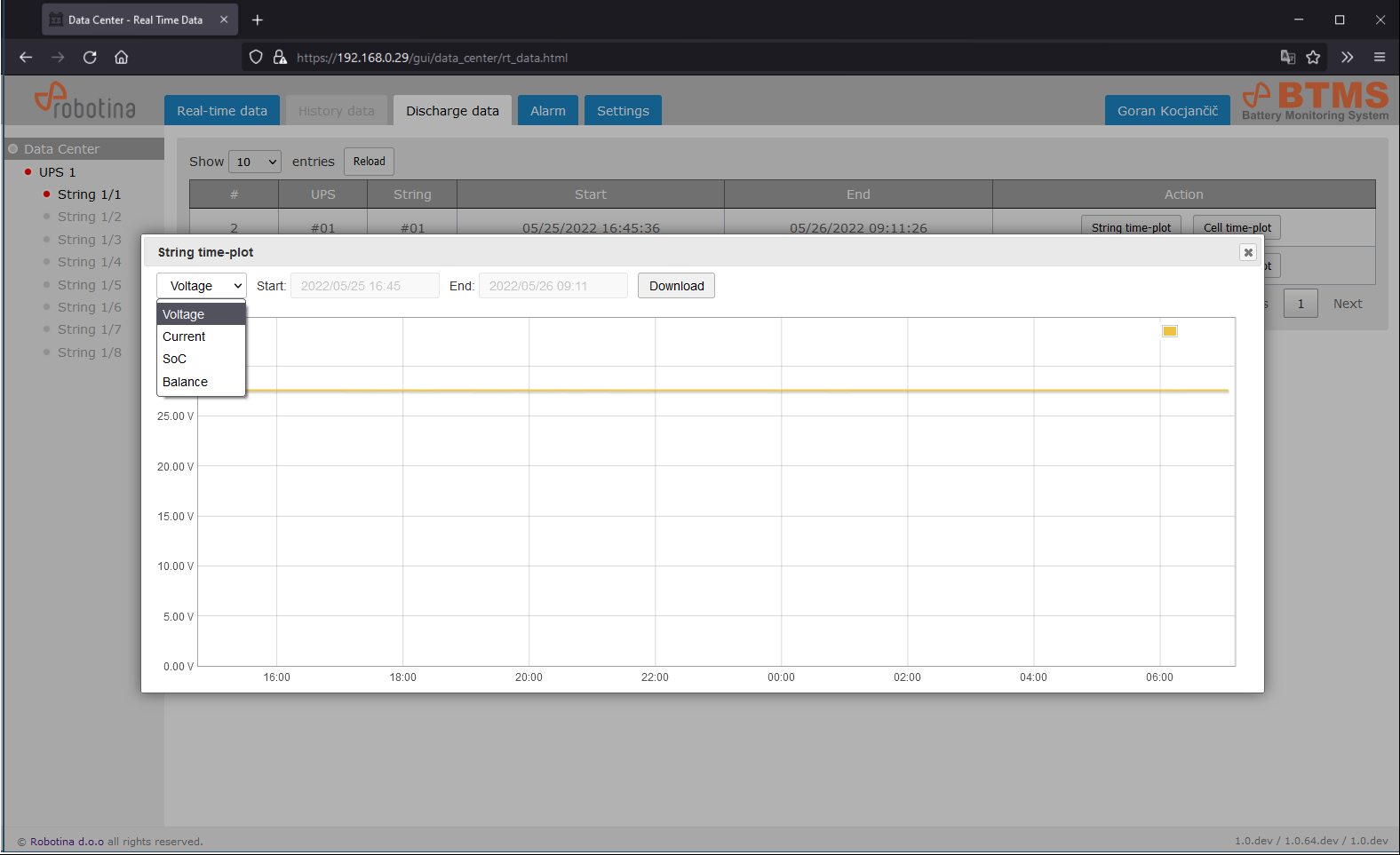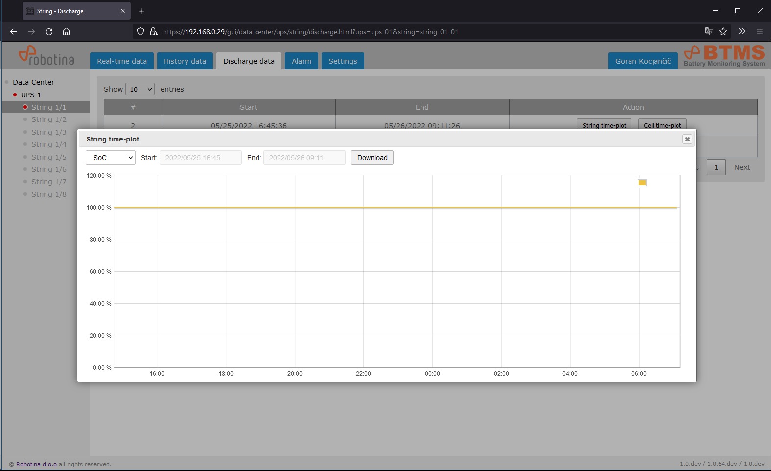 | 2 | String time-plot for discharge event |