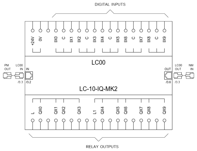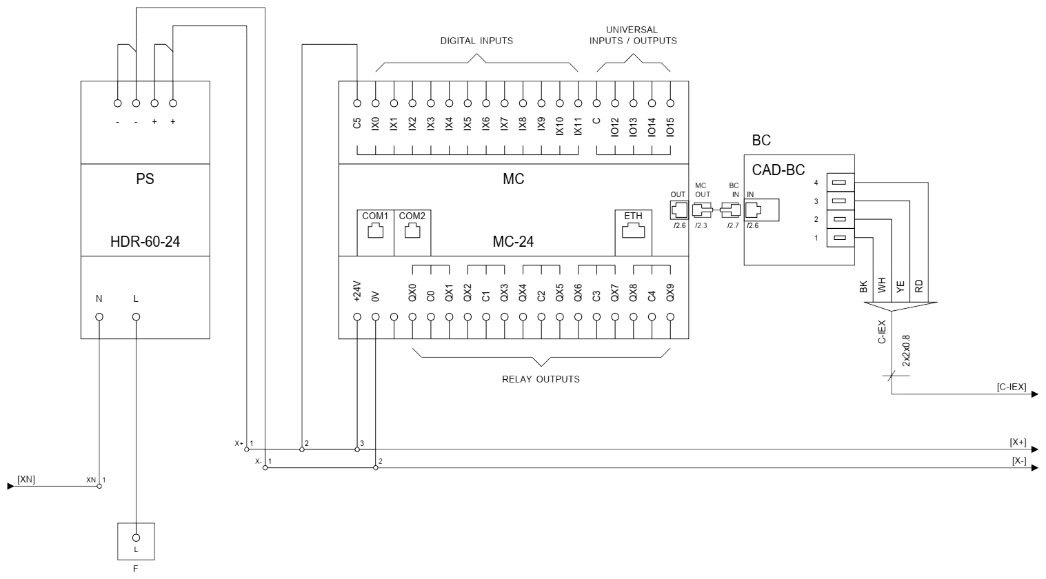 In addition to the terminal blocks for N (XN) and PE (XPE), it is recommended to also install terminal blocks for + and - 24 VDC (X+ and X-).