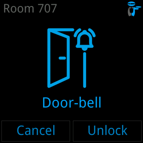 The door-bell screen is activated when the door-bell button on the corridor panel is pressed.