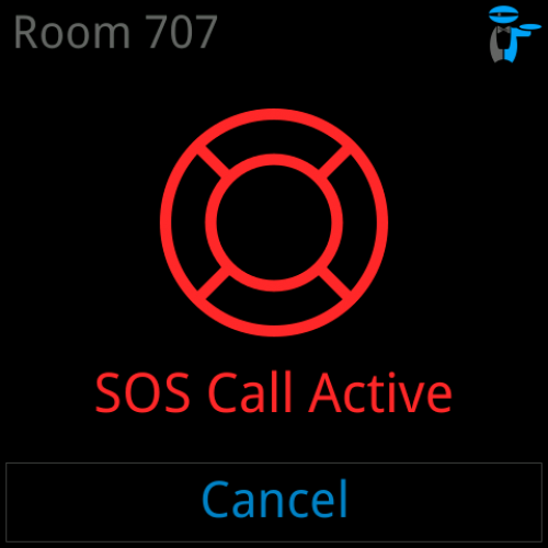 The SOS screen is activated when an emergency (SOS) signal is triggered.