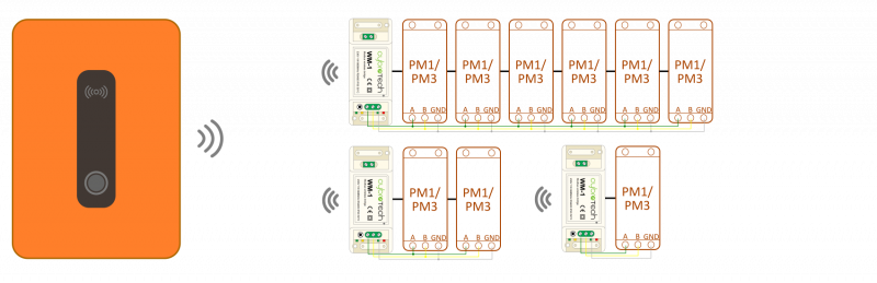 | Charger and wireless relay. Up to 8 WR-1 modules can be used. |