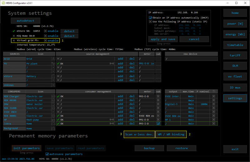 - HEMS Configurator → settings → Virtual grid PS must be disabled (1)