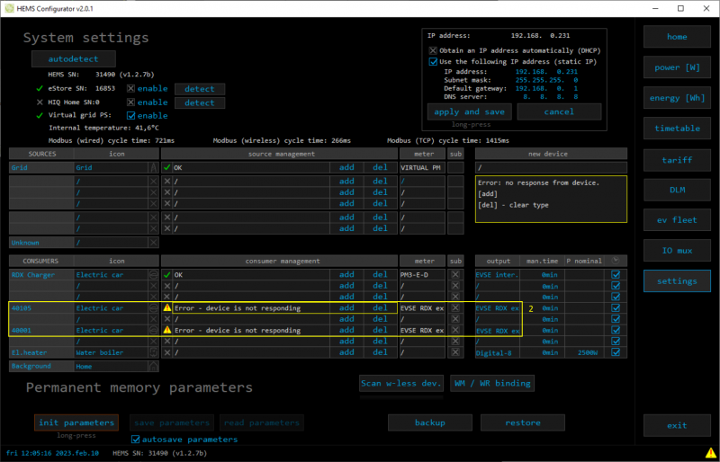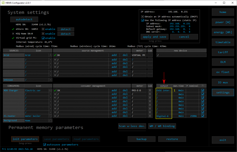 • HEMS Configurator → settings → set static IP (it's recommended) (4)