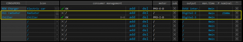 - HEMS Configurator → settings page, define digital output for consumer (e.g. Digital-2 & Digital-3),