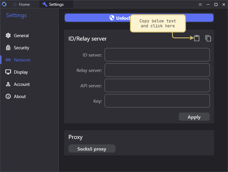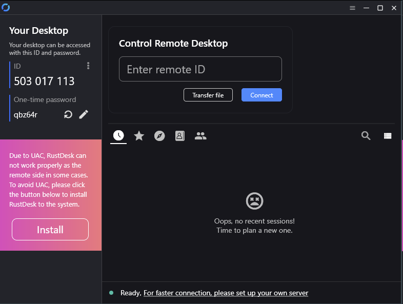 Download Rustdesk client for your platform from Rustdesk Github and run it.