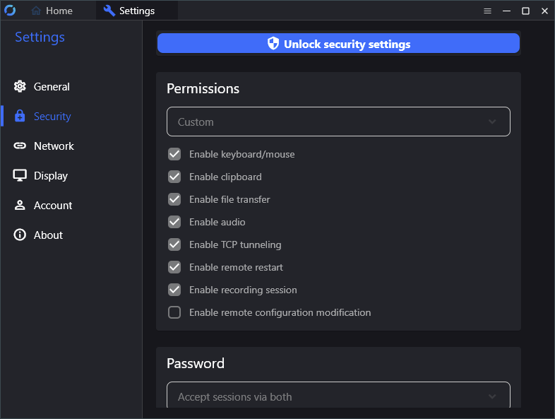 Permanent password is needed for unattended access to your computer (assess to home computer from work).